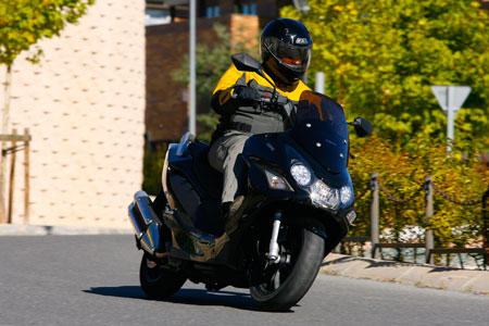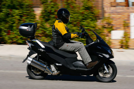 En ciudad es fácil de maniobrar y a pesar de su tamaño, permite callejear y pasar entre coches con margen de seguridad. En ruta es cómoda y se conduce fácil, su suavidad de suspensiones se agradece en tramos largos de Autopista. En conducción a duo la suspensión se torne más dura pero sigue siendo muy aprovechable. Equipamiento Es seguramente uno de los Scooters más tecnológicos del mercado, empezando por su llave manos libres, como en los coches, no hay clausor, cuando el piloto se acerca con la llave en el bolsillo, se desbloquea el arranque y podemos poner en marcha la moto, muy interesante y novedoso. No tan novedoso son las luces de leds pero no por ello menos interesante, las monta a modo de luz diurna delante y el las luces de freno y posición traseras. El cuadro de mandos ofrece toda la información que podamos desear, tiene una fácil lectura y se ve muy bien de noche. El asiento es cómodo ámplio y permite el acomodo de dos adultos sin problema. Debajo tenemos un hueco dónde cabe un casco integral y otro tipo jet. Detrás del escudo tenemos una buena guantera. La frenada integral es otro de los detalles a destacar del nuevo S3 Calidad/Precio Con un precio de 2.649 euros es uno de los Maxiscooters más económicos del mercado, y con el equipamiento que monta, sus posibilidades de personalización y el potente motor de inyección electrónica, pensamos que debería estar en la lista de todo el que quiera un vehiculo de estas características, su relación calidad/precio es soberbia.