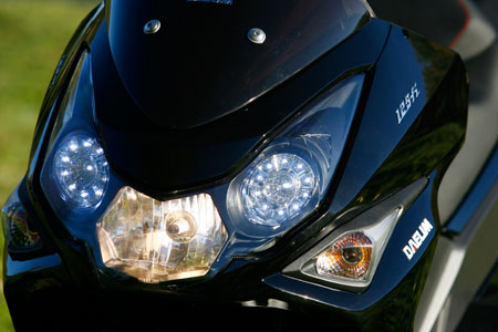Daelim S3 Daelim marcó un antes y un después con la inefable NS125, años después la firma coreana, sigue presente y asentada en nuestro mercado, con una gama de Scooters y motos de baja cilindrada muy interesante, pero a esta gama le faltaba un referente, un modelo que fuera el portaestandarte de la marca, y ahora lo tiene es el S3. El S3 es un Maxiscooter con motor de 125 centímetros cúbicos que marcará un antes y un después en los productos de Daelim, con unos acabados mucho más curados, nueva evolución de su propulsor, muchos detalles interesantes y un precio nada caro. Motor Una de las mayores revoluciones del S3 es su motor, que es una evolución del que monta la Roadwin 125, pero adaptado al cambio automático y a la diferente posición en el chasis. Este propulsor representa el tope en cuanto a tecnología actual aplicada al mundo de la moto, ya que se trata de un monocilindrico de 125 centímetros cúbicos, con inyección electrónica, refrigerado por liquido, con cuatro válvulas y doble árbol de equilibrado. Este motor desarrolla 14 caballos y tiene unas prestaciones que lo acercan mucho a las realizaciones más rápidas del mercado. Con una punta de 113 km/h nos podemos plantear un uso mixto, carretera / ciudad. Sus prestaciones son buenas, teniendo en cuenta que el conjunto no es libiano, pero acelera con prontitud y recupera bien. El consumo se sitúa en la media del segmento, con unos 3 a 3,5 litros a los cien kilómetros. Comportamiento En su diseño ha primado el confort, pensamos que es una decisión inteligente, puesto que las ambiciones deportivas de los scooters de 125 son como poco escasas. Sus suspensión filtra bien las irregularidades del asfalto y al mismo tiempo permite un alto límite de seguridad en circulación, sin ningún tipo de rebote ni movimientos raros.
